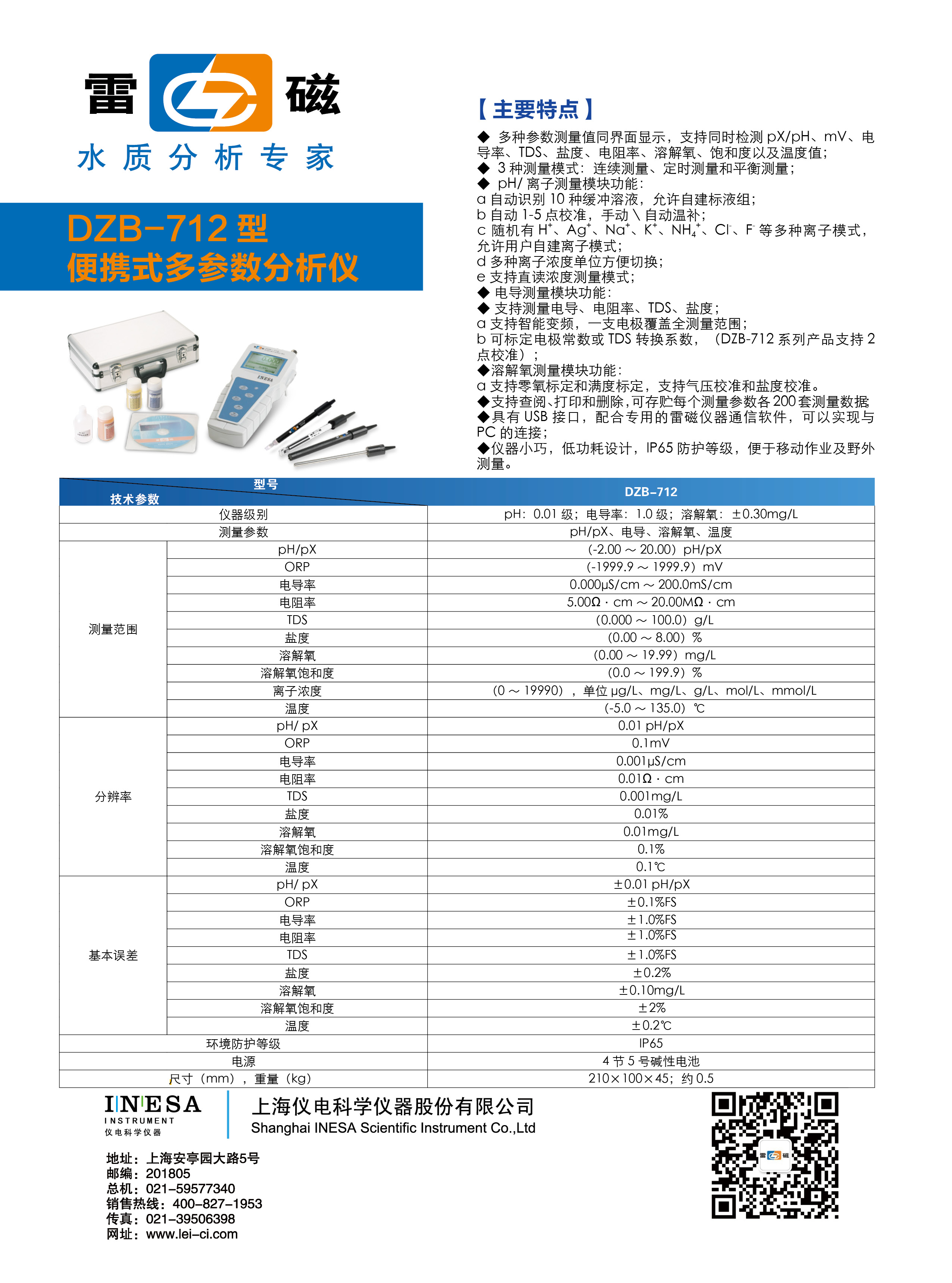 儀器級別 | pH:0.01級;電導率:1.0級;溶解氧:±0.30mg/L | |