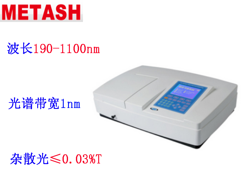 上海元析V-5100B型可見分光光度計波長范圍320-1000nm,光譜帶寬 4nm或2nm可選,雜散光0.05%T;V-5100B型可見分光光度計可連續測試和存儲200組數據,測量和存儲的數據具有斷電保持功能,波長自動校準、自動設定、偏差自我修復;