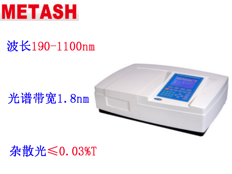 上海元析V-5800(PC)型可見分光光度計波長范圍320-1100nm,光譜帶寬2nm,雜散光≤0.05%T;V-5800(PC)型可見分光光度計雙光束比例監測光學系統,波長自動校準、自動設定、偏差自我修復,能直接建立標準曲線,V-5800PC型標配元析公司的掃描軟件可直接完成光度測量、定量測試、定性測試、動力學測試、多波長測試、DNA/蛋白質測試及數據圖譜的處理。
