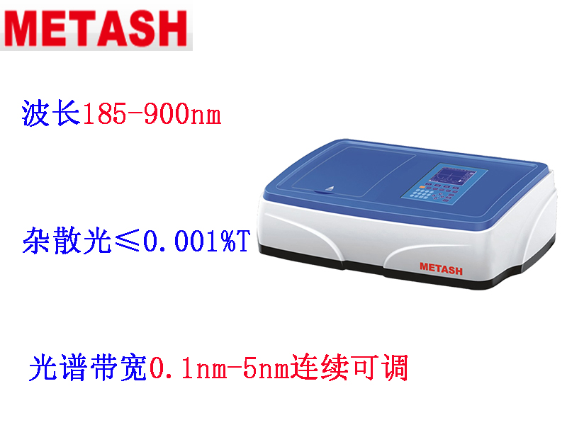 上海元析V-5100H型可見分光光度計波長范圍320-1000nm,光譜帶寬 4nm或2nm可選,雜散光≤0.1%T。V-5100H型可見分光光度計,可存儲200條標準曲線,根據編號可隨意調用;測量和存儲的數據具有斷電保持功能;波長自動校準、自動設定、偏差自我修復